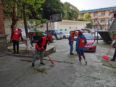 十余名黨員及青年志愿者來到東興區新江社區開展志愿服務活動。此次志愿服務活動的主要內容是對該區域二次供水設備的維護、保養及老年公寓的清潔和志愿服務。志愿者們身著紅馬甲、頭戴小紅帽、手拿掃帚或背擔消毒水噴灑罐,對玉蘭山莊老年公寓及二次供水設施設備的區域進行仔細清掃和消毒。