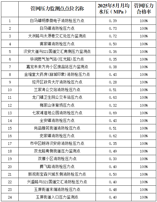 內(nèi)江市水務(wù)有限責(zé)任公司2025年5月管網(wǎng)壓力月報(bào)