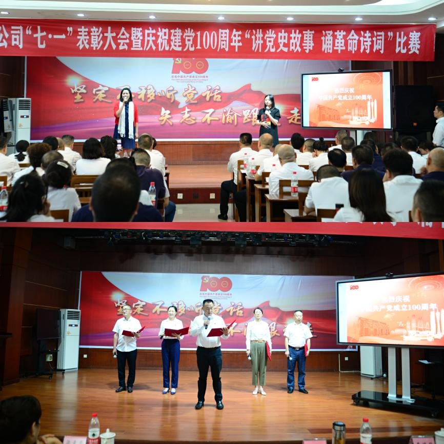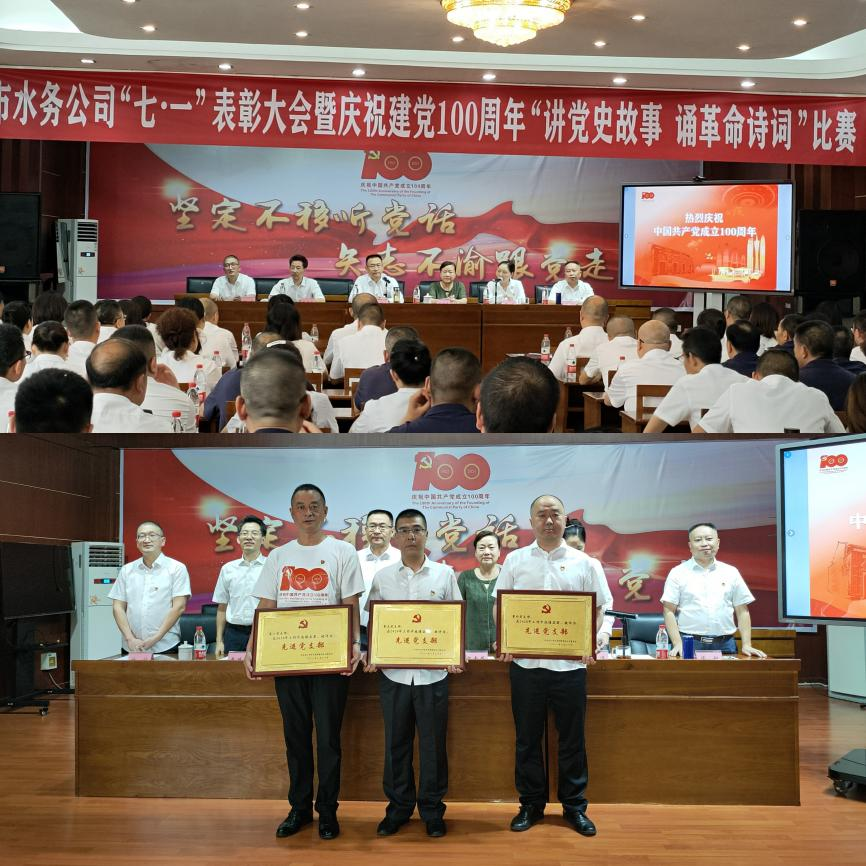 6月30日下午,在中國共產(chǎn)黨成立100周年之際,為表彰先進(jìn),弘揚(yáng)正氣,樹立典型,進(jìn)一步激勵(lì)各基層黨組織和廣大黨員履職盡責(zé),擔(dān)當(dāng)有為,推動(dòng)企業(yè)持續(xù)向好發(fā)展。市水務(wù)公司黨委舉辦“七一”表彰大會(huì)暨慶祝建黨100周年“講黨史故事 誦革命詩詞”比賽。市國資委調(diào)研員梁素蓉,內(nèi)投集團(tuán)黨委委員、紀(jì)委書記曹德華出席會(huì)議,公司領(lǐng)導(dǎo)班子成員、各支部黨員代表近132余人參加會(huì)議。會(huì)議由黨委副書記、總經(jīng)理李濤主持。