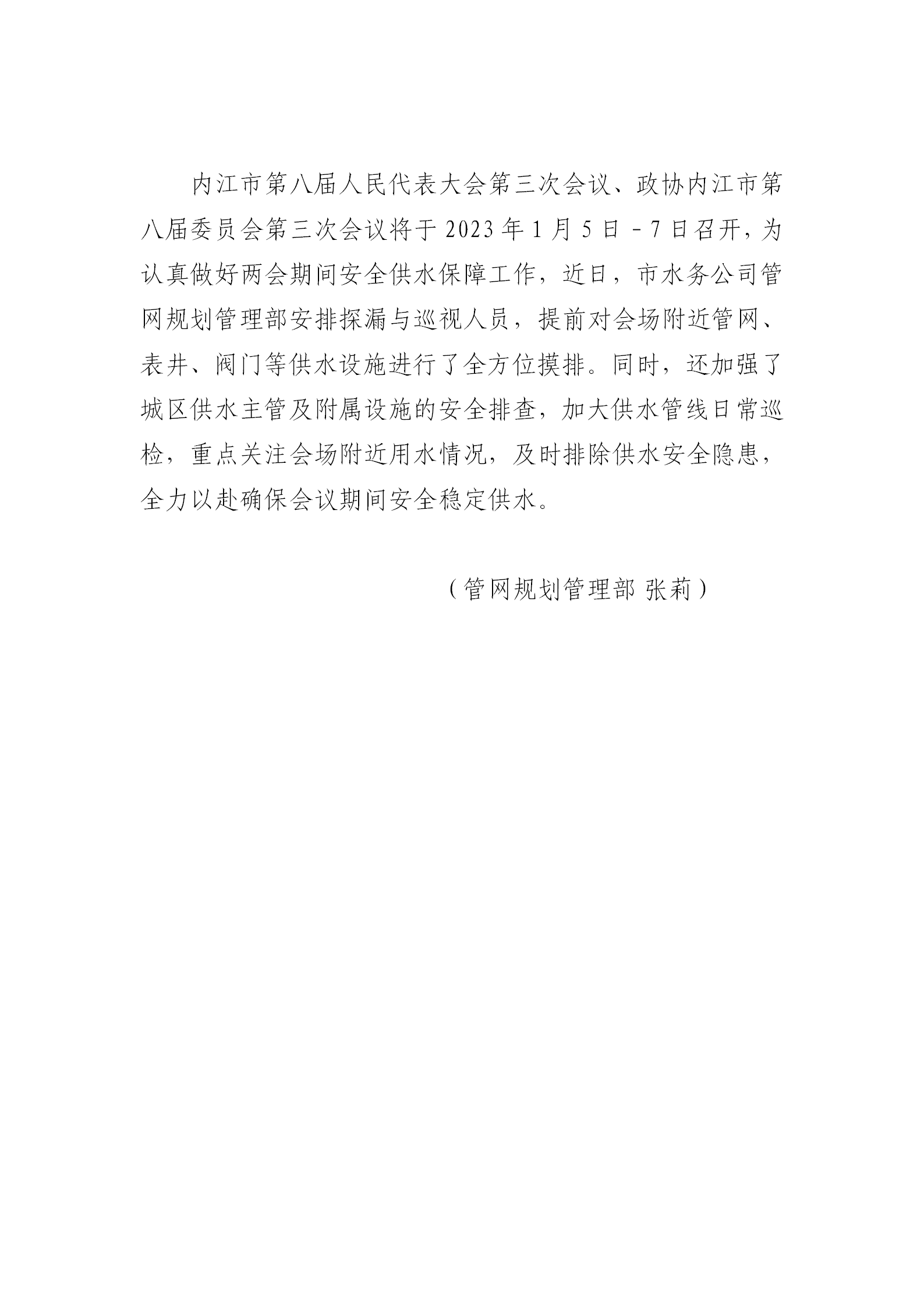 安全穩定供水 兩會順利召開