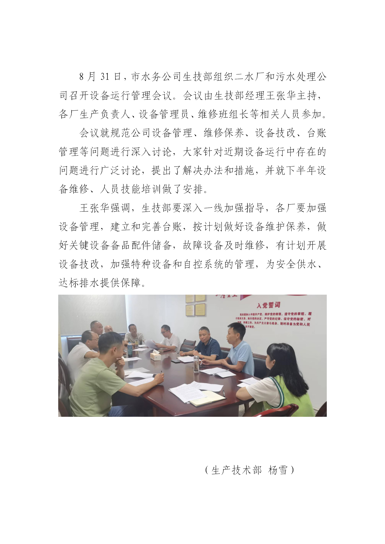 加強設備管理 保障供排水安全