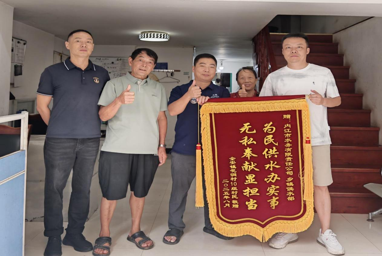 8月25日,花洞村五組村民代表將一面印有“為民供水辦實(shí)事 無(wú)私奉獻(xiàn)顯擔(dān)當(dāng)”的錦旗贈(zèng)予鄉(xiāng)鎮(zhèn)供水部,以此表達(dá)對(duì)部門(mén)高效、貼心服務(wù)的由衷感激。