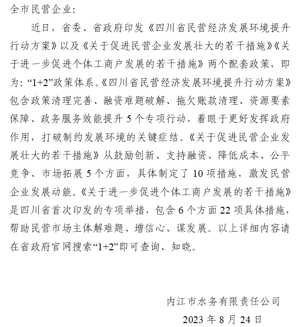 內(nèi)江市“四川省民營(yíng)經(jīng)濟(jì)‘1+2’政策”告知書